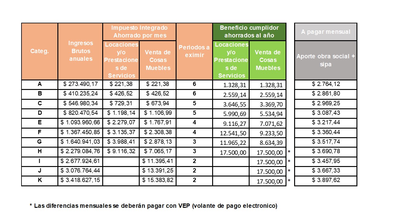 Por lo tanto no vas a pagar el componente impositivo de la cuota mensual a partir de enero de 2021 y por una cantidad de meses que va a depende de la categoría de monotributo en la cual te encuentres.